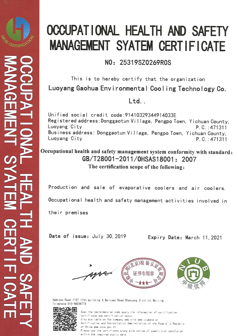 在洛陽高華環(huán)保公司全體員工及合作伙伴的不懈努力下,經(jīng)過認(rèn)證公司專家的***、嚴(yán)格、細(xì)致的指導(dǎo)和審核,確認(rèn)洛陽高華環(huán)保冷卻科技有限公司的蒸發(fā)式冷卻(凝)設(shè)備、空冷器的生產(chǎn)和銷售的質(zhì)量管理體系符合:GB/T19001-2016/ISO9001:2015 標(biāo)準(zhǔn)的要求,并于2019年7月30日,向洛陽高華環(huán)保冷卻科技有限公司正式頒發(fā)了ISO9001質(zhì)量管理體系認(rèn)證證書。